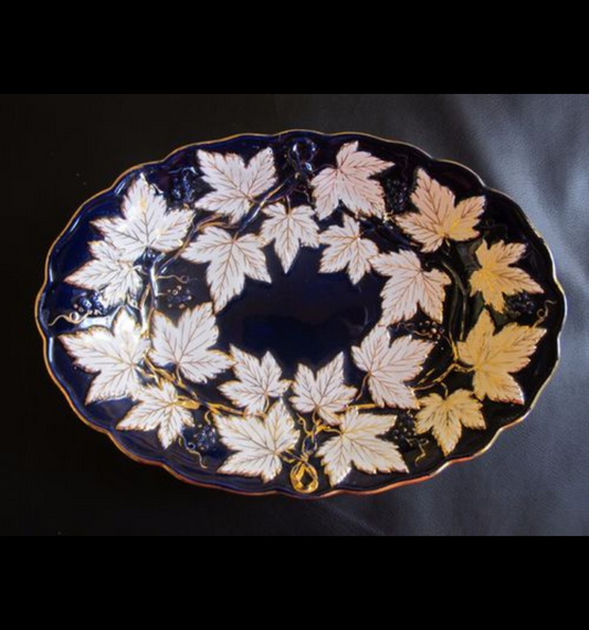 Meissen: Prunkschale / Schale, kobaltblau mit weißem Laub